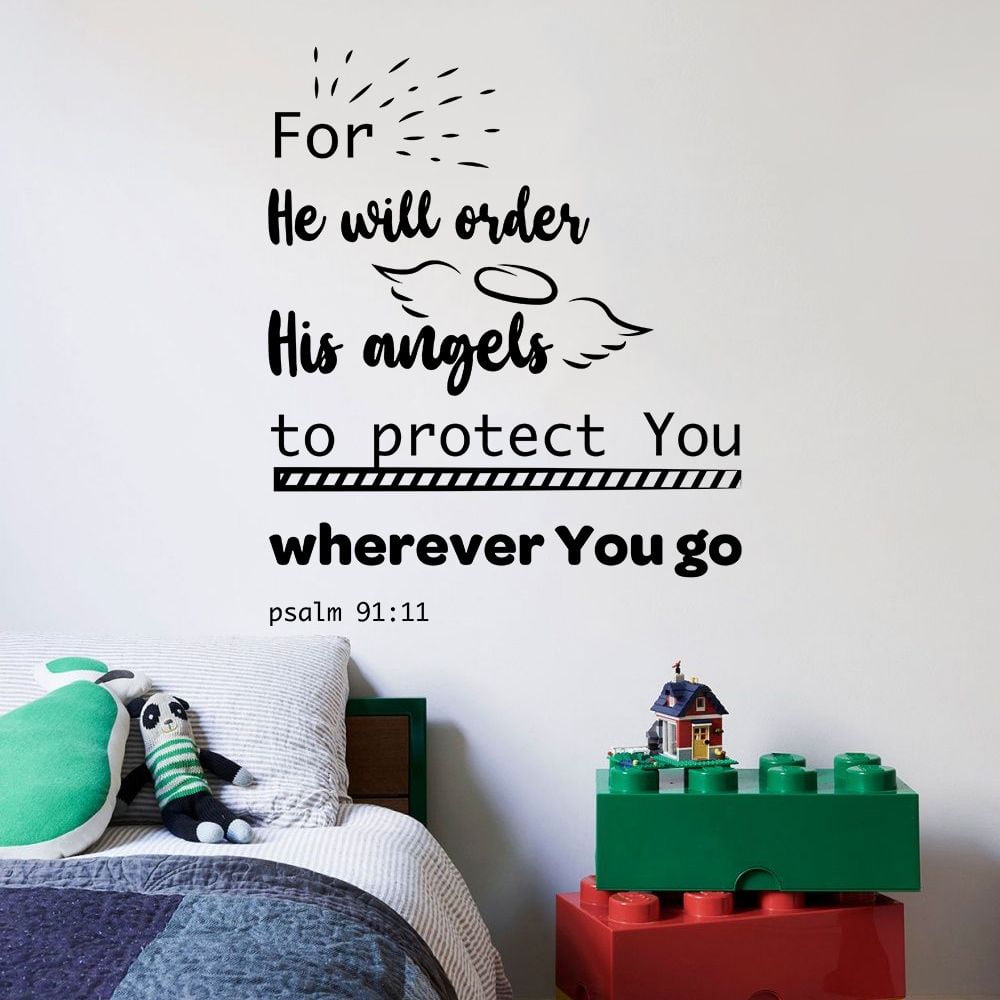 His Angels Psalm 91 11 Baby Children Family Quote Quotes Wall Sticker Art Decal For Girls Boys Room Bedroom Nursery Kindergarten Fun Home Decor Stickers Wall Art Vinyl Decoration Size 10x8 Inch
